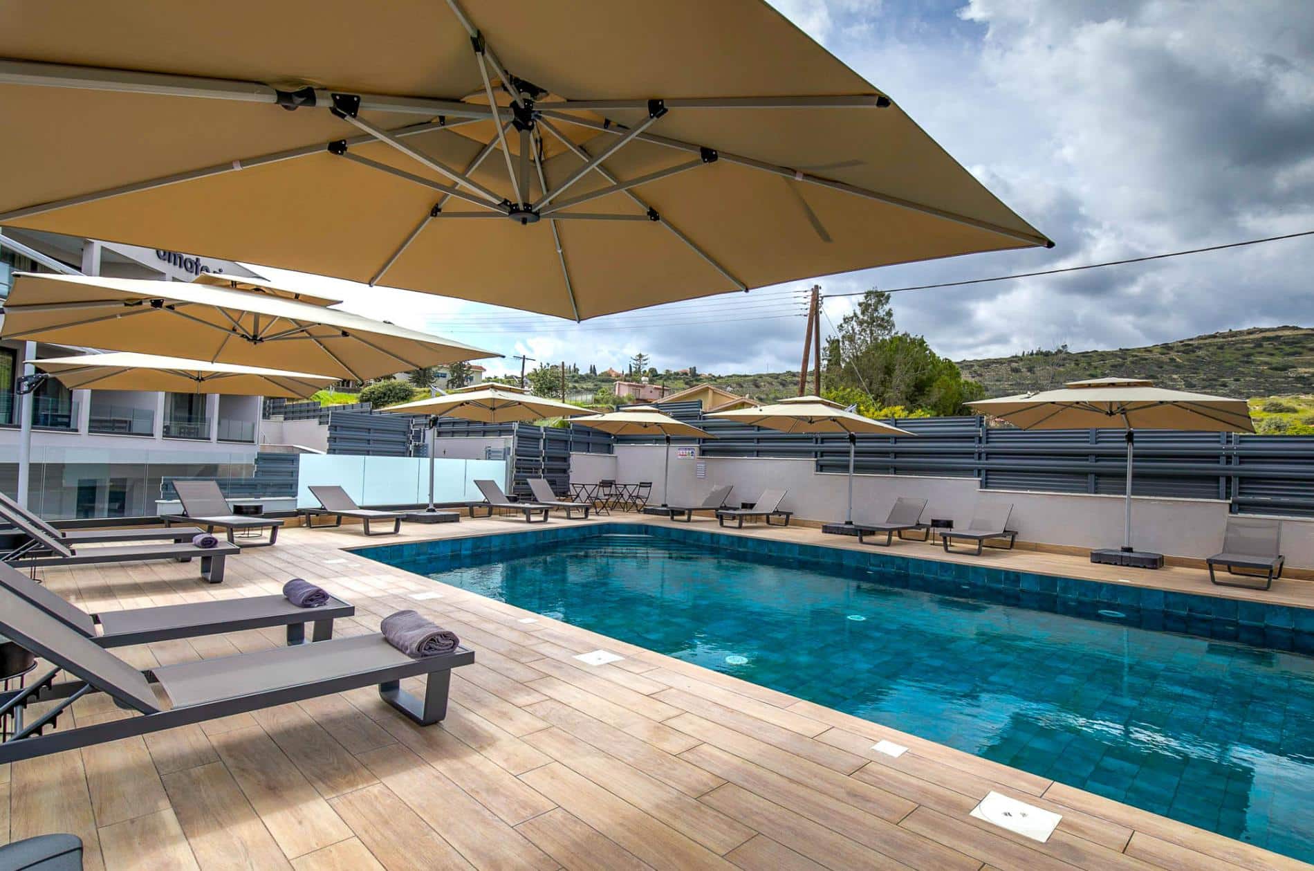 Set in a quieter part of the area, the location offers breathing room and a sense of retreat, with easy access by car to the coast and Limassol when needed. At the heart of the building, the communal pool offers a shared place to cool off, float, or pause under the sun, an easy rhythm woven into everyday living.