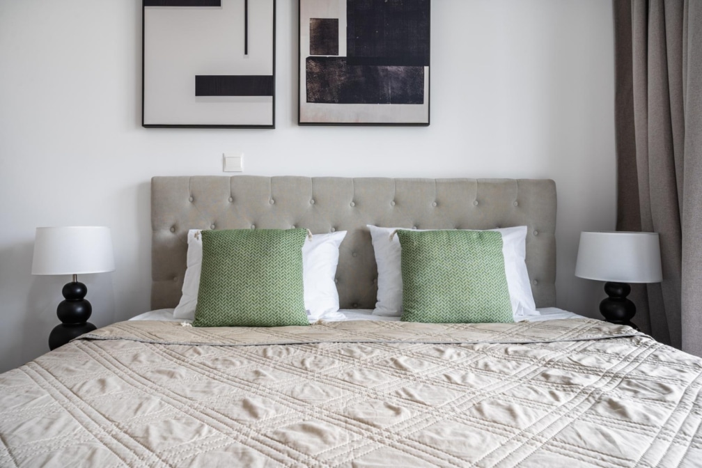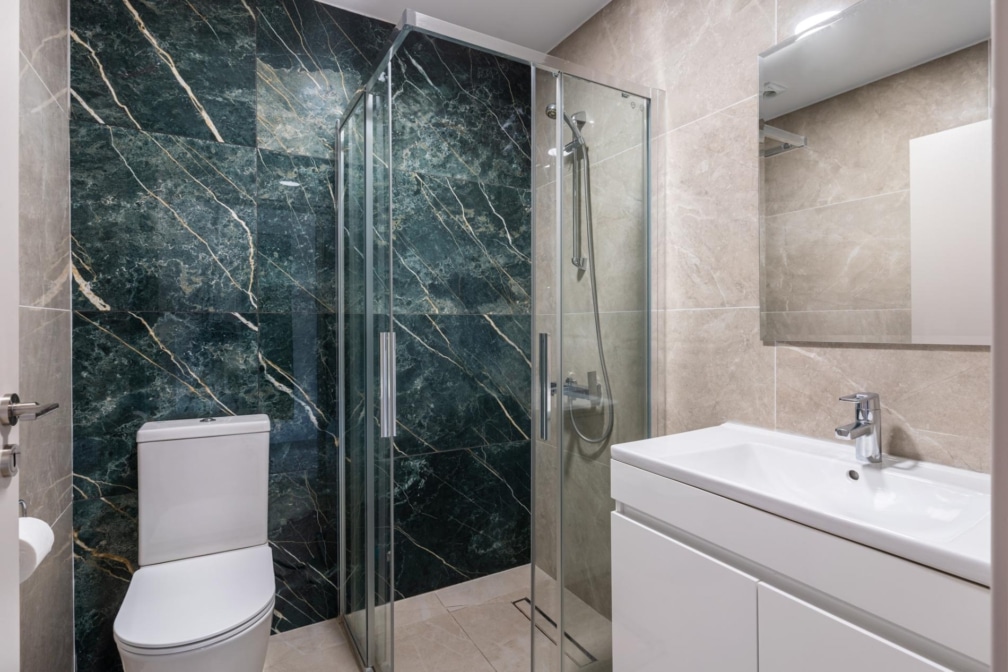 Both bedrooms feature double beds, and the apartment includes a modern bathroom with a walk-in shower, thoughtful touches that make daily life easy and effortless.