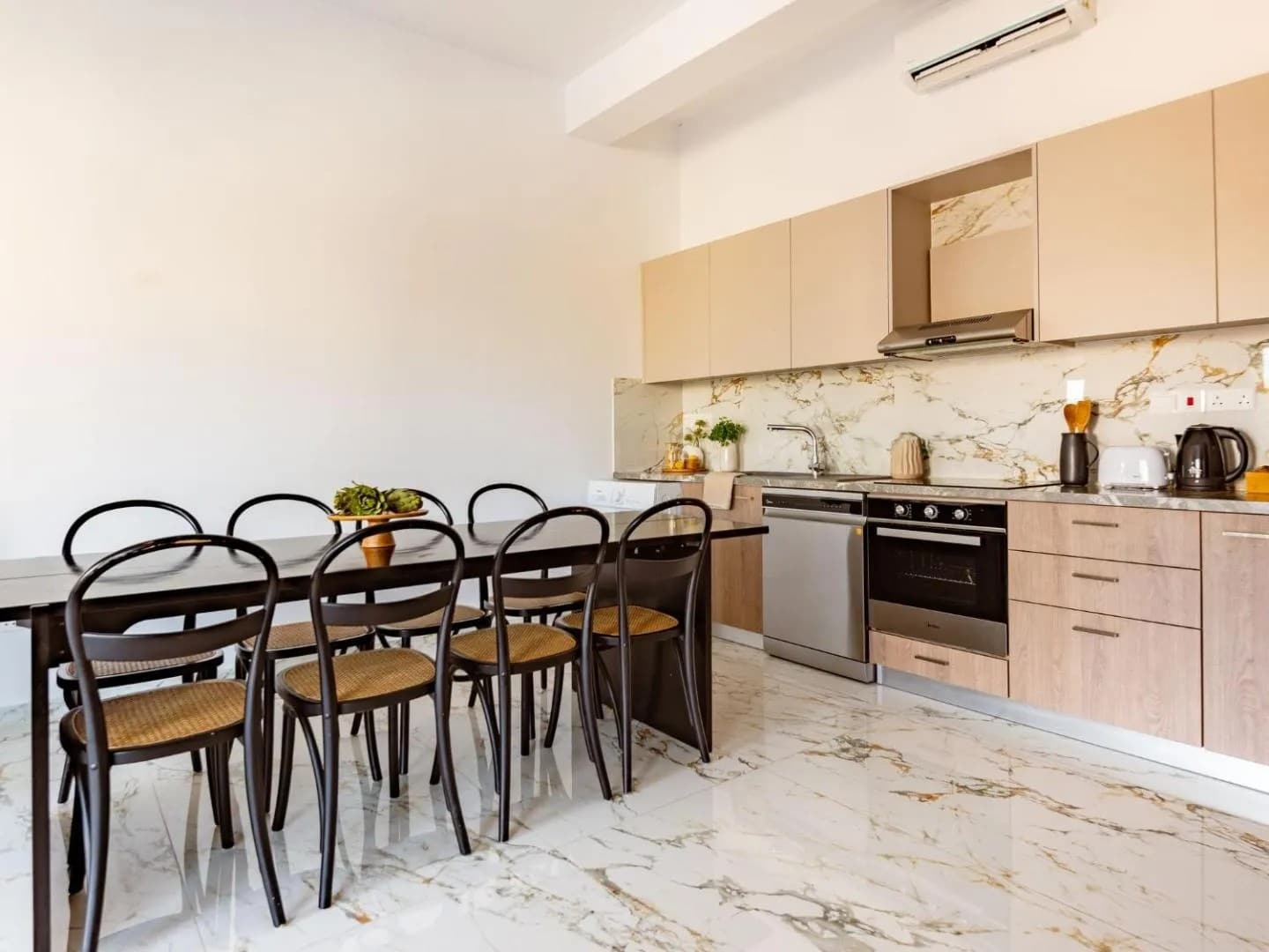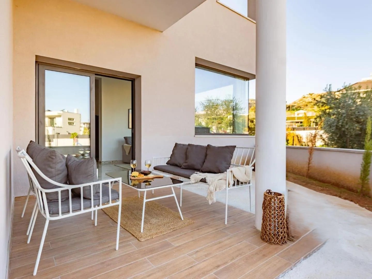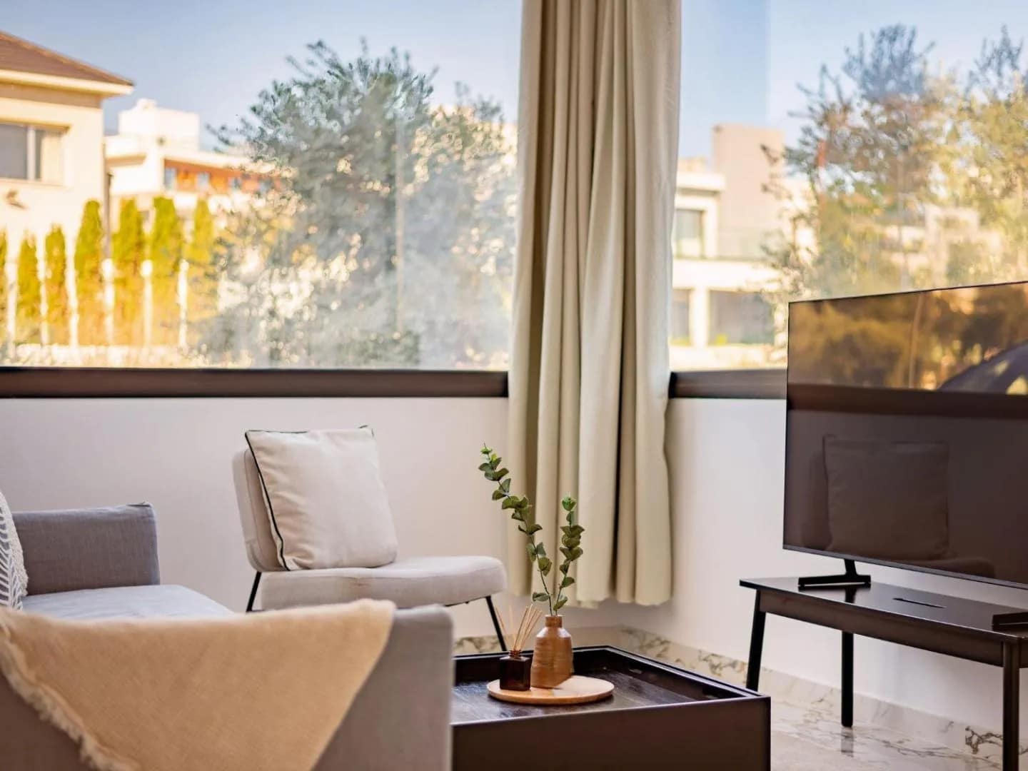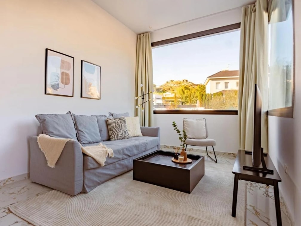 Inside, the apartment is designed for comfort and simplicity. Modern furnishings, clean lines, and soft natural light create a calm, uncluttered atmosphere, a space where everything feels considered yet effortless.