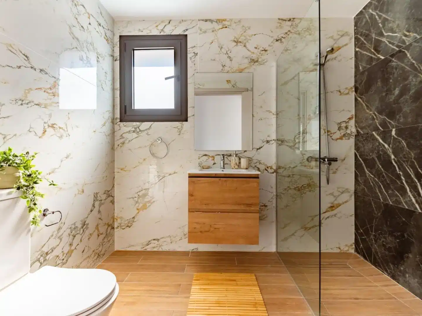 Both bedrooms feature double beds, and the apartment includes a modern bathroom with a walk-in shower, thoughtful touches that make daily life easy and effortless.