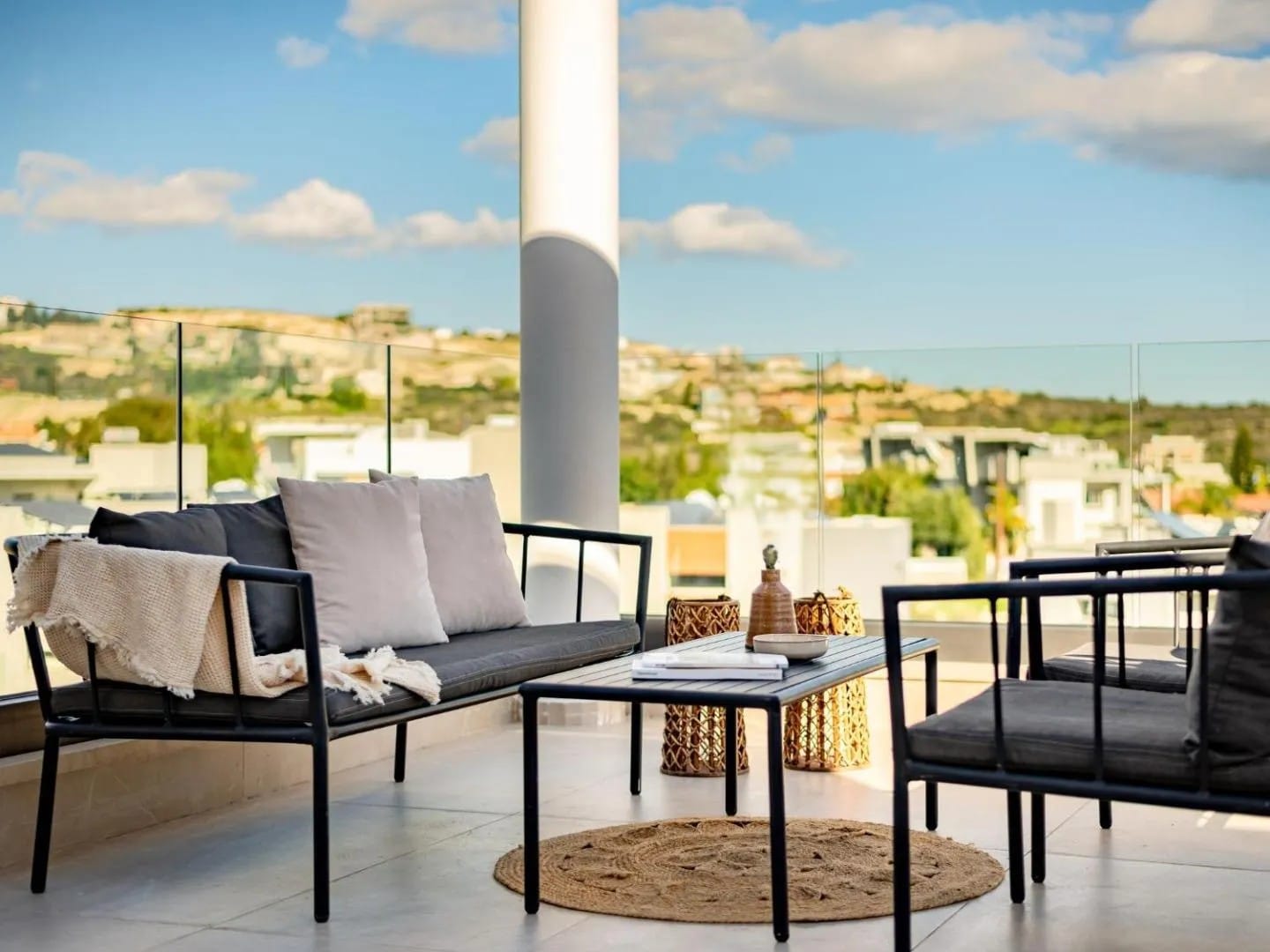 Here, the days move slowly and easily. The coastline is nearby, dotted with beaches, cafés, and beach clubs, while Limassol is within effortless reach. The surroundings are green and calm, skies open, and at the heart of the building, a communal pool offers a shared place to float, soak up the sun, or pause between plans, a quiet rhythm for the senses.
